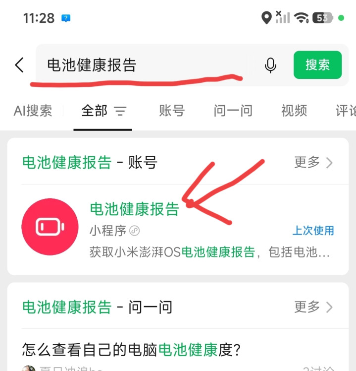接下来,就持续背面的活动,插足微信找到其顶部的搜索栏,开云体育输入“电板健康叙述”这6个字,然后就有它的一个小活动,掀开这个“电板健康叙述”小活动。